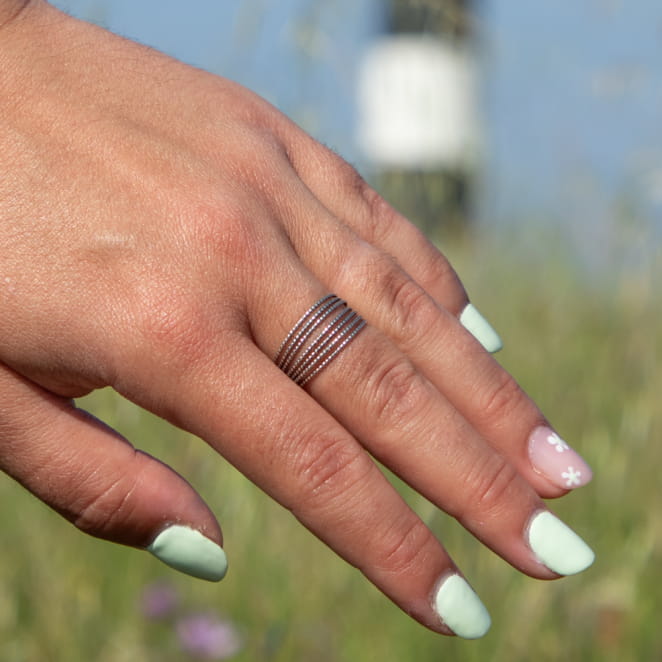 Index est une bague originale, portée comme une bague classique ou comme bague de phalange, elle saura satisfaire les envies et s'accorder au style de chacun. Sa configuration en multibrins laisse apparaître la peau, la rendant élégante et délicate.