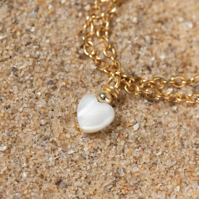 - d'un pendentif coeur en nacre blanc.