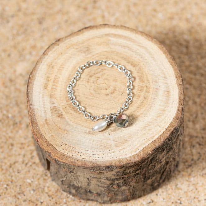Laissez-vous séduire par notre bague Mumu ! Osez une touche d'originalité, tout en délicatesse. Grâce à une perle en nacre et une perle à facettes bleu pétrole, cette création raffinée et discrète sera facile à associer pour un look tendance et chic !