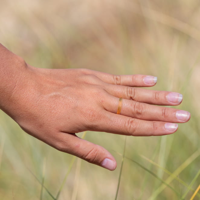 Trio est une bague élégante qui permet de laisser entrevoir la peau. Sa modernité et sa légèreté la rendent agréable à porter au quotidien.