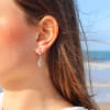 Personnalisez vos tenues grâce aux petites boucles d'oreilles pour femme Aicha, ces délicats bijoux sont facilement associables et apportent charme contemporain. Les boucles d'oreilles mêlent discrétion et finesse avec son design épuré et soigné, ce duo triangulaire capture les éclats argentés du soleil sur les coquillages en bord de mer.