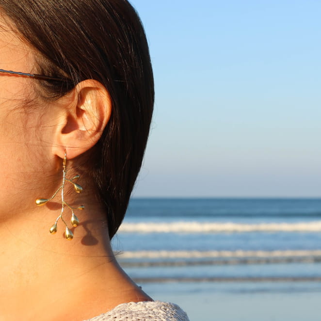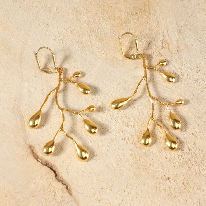 Laissez-vous charmer par les boucles d'oreilles pendantes Algue, ces bijoux sont légers et apportent éclat grâce au doré à votre visage. voir plus