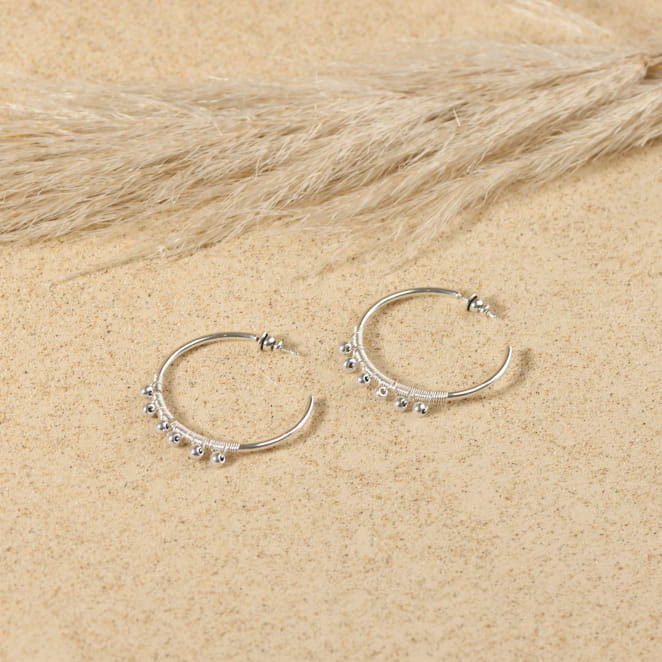 Adoptez les boucles d’oreilles Alina, un modèle raffiné avec délicatesse. Ces créoles, agrémentées de perles argentées, s’enroulent délicatement autour de l’oreille. Leur ligne pure et leur éclat subtil en font un bijou unique.
