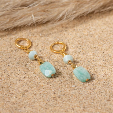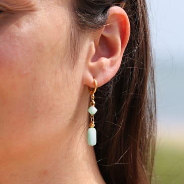 Laissez-vous séduire par les boucles d'oreilles Aminata. Dorées, blanches et vertes, elles sont une invitation à l'évasion et à la douceur des vacances en bord de mer. Composées d'une graine de lotus et d'une perle en aventurine verte, ces boucles harmonieuses évoquent la sérénité des plages sauvages et les trésors cachés de l'océan. L'aventurine verte apporte une touche naturel. Laissez ces boucles d'oreilles artisanales vous accompagner au quotidien !