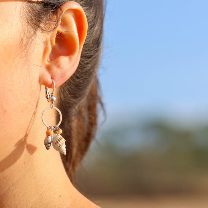 Avec les boucles d'oreilles Anais, ne vous étonnez pas d'entendre le son de l'océan partout où vous êtes ! Leurs délicats pendentifs coquillages vous murmurent les secrets des océans à vos oreilles.