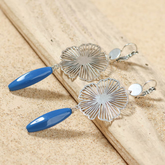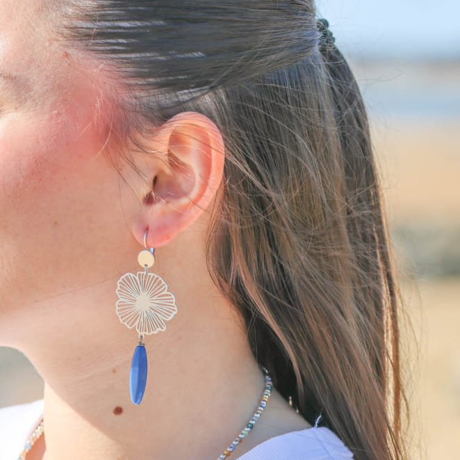 Illuminez votre style avec les boucles d’oreilles Anemone Leur motif ajouré en argent évoque la légèreté d’une anémone caressée par le vent, tandis que la goutte bleu intense apporte une touche éclatante et raffinée. Subtil mélange entre nature et élégance, confectionnés avec soin à Oléron, pour vous accompagner dans toutes vos escapades ensoleillées.