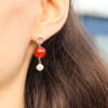Optez pour les boucles d'oreilles Arlettie, un bijou qui marie simplicité et douceur, ces pièces évoquent la nature et les paysages lumineux de la côte. Ces petites boucles, composées de perles de rivière blanches et de perles en pierre rouge, s’associent à l'argenté. Elles sont discrètes et raffinées.