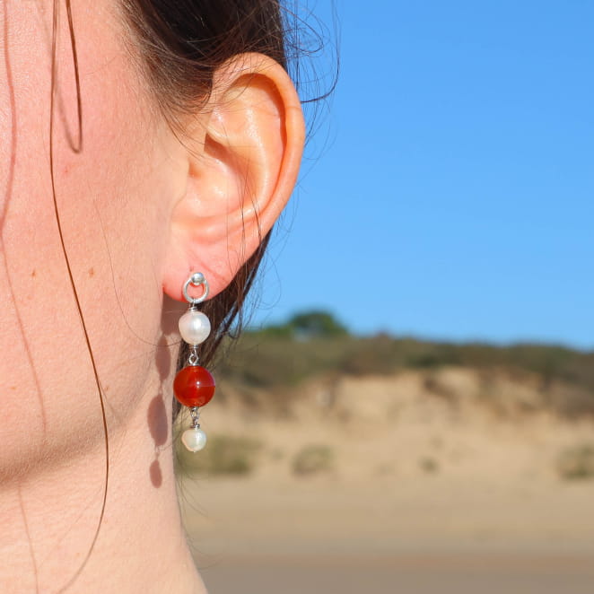 Les boucles d'oreilles argentées pour femme Arlettie évoquent la nature et les paysages lumineux de la côte. Ces petites boucles asymétriques ont de la personnalité avec leurs nuances terracotta combinées à l’éclat des perles de rivière ! Ajoutez ce bijou à votre style tout en ajoutant une touche de délicatesse et de couleur.