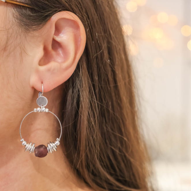 Les boucles d'oreilles Gruyère capturent l'élégance subtile des paysages côtiers embrumés. Elles sont ornées d'une perle en verre recyclé violette. Ces boucles d'oreilles évoquent la douceur des matinées au bord de l'eau, avec un style épuré et intemporel qui s'accordera avec toutes vos tenues. Une pièce sobrement raffinée, à porter au quotidien.