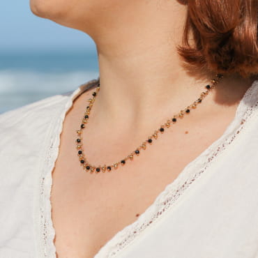 - d'une perle en agate noire,