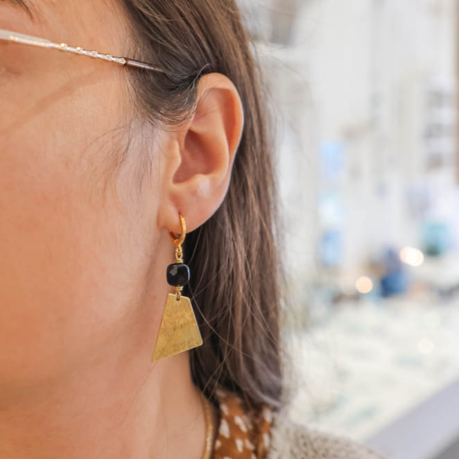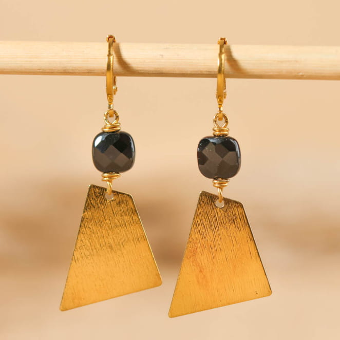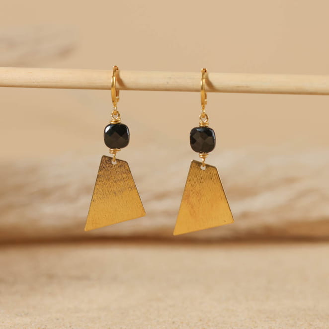 Sublimez votre style avec les boucles d'oreilles Buddy, en métal doré au design actuel et élégant. Chaque pièce associe une perle noire en agate, symbole de raffinement intemporel, à un pendentif géométrique doré, ajoutant une touche audacieuse à votre tenue. Inspirées par l'océan et les voyages en bord de mer, ces boucles d'oreilles incarnent l'esprit d'aventure et la sérénité des vagues. Légères et confortables, elles s'accordent parfaitement à toutes vos tenues.