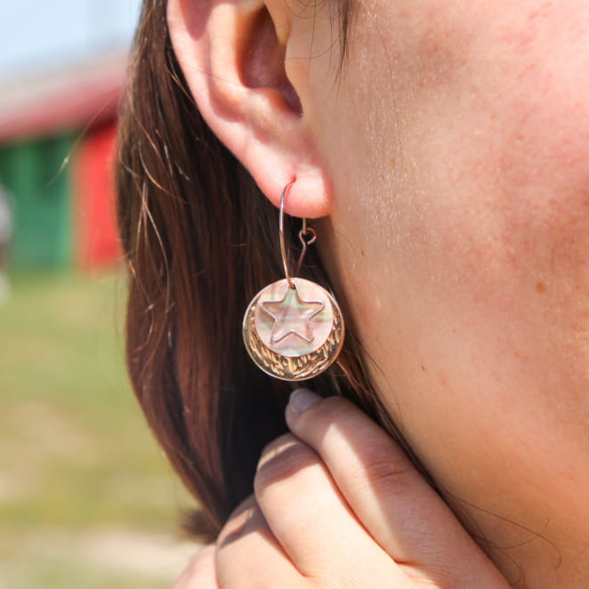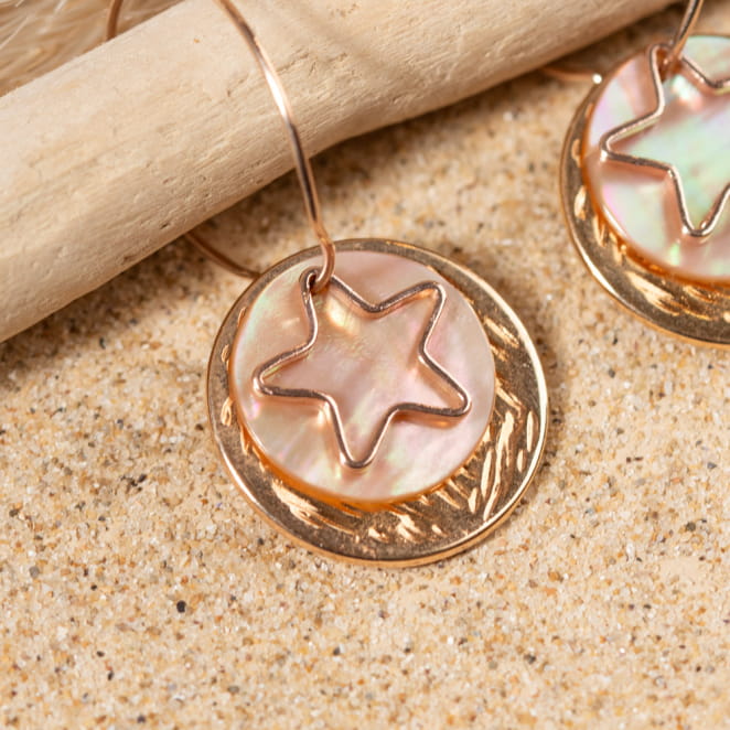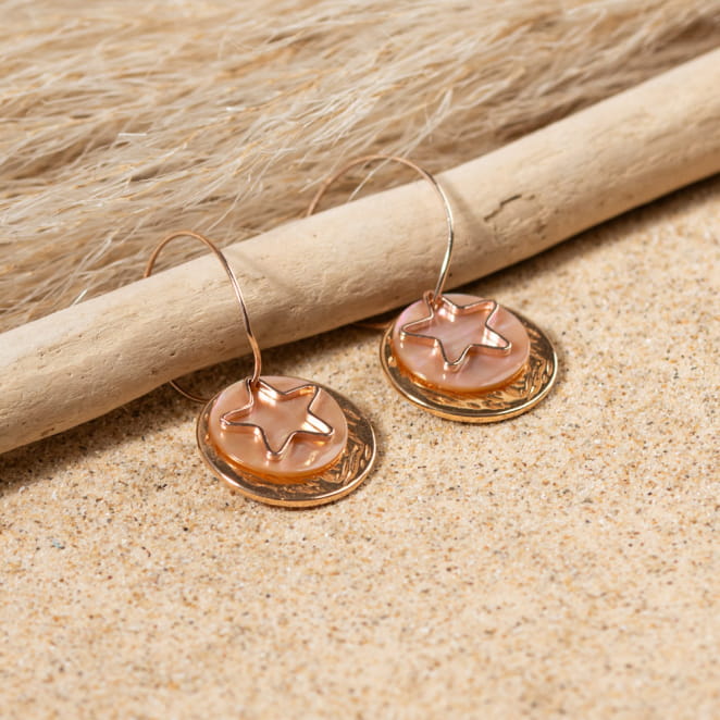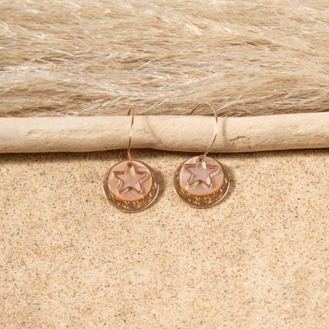 Les boucles d'oreilles Cachet sont les boucles parfaites ! Montées sur de petites créoles, elles sont agréables à porter et leur pendentif en nacre apporte douceur et lumière à votre visage.