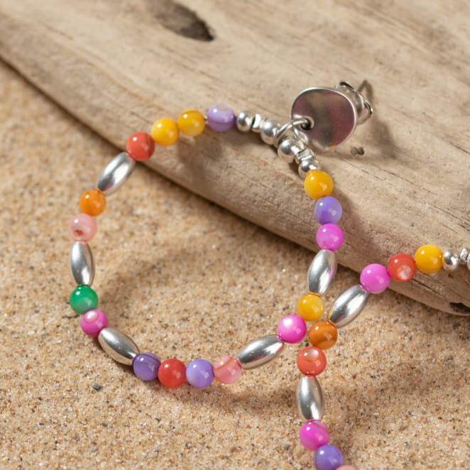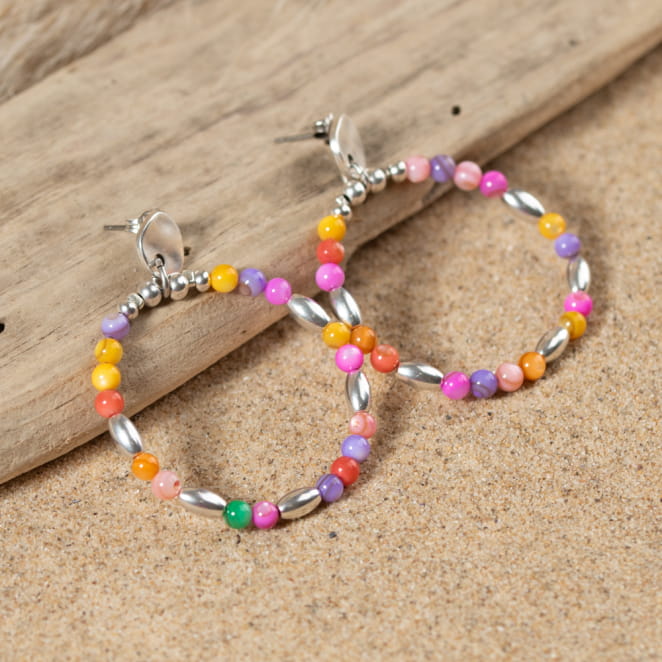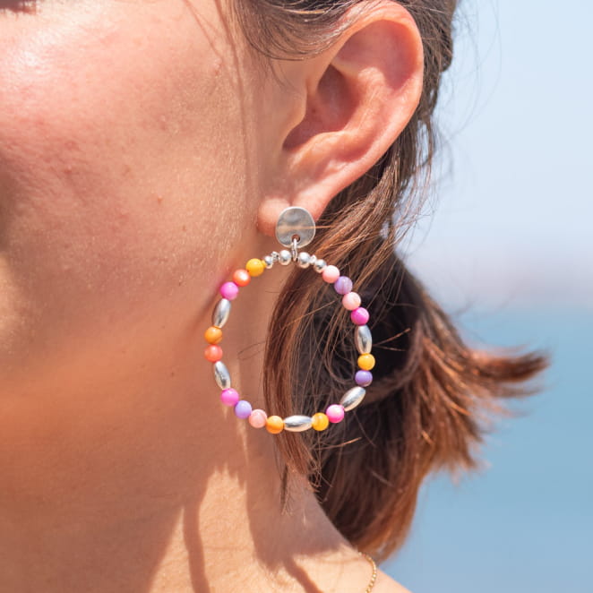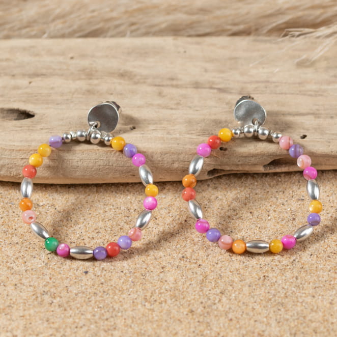Illuminez votre visage avec les boucles d'oreilles Candice. Parées de perles en nacre multicolore et de détails en métal argenté, ces boucles apportent éclat et dynamisme à votre look. Laissez-vous séduire par leur élégance et leur touche de couleur vibrante pour sublimer votre teint en toute occasion.