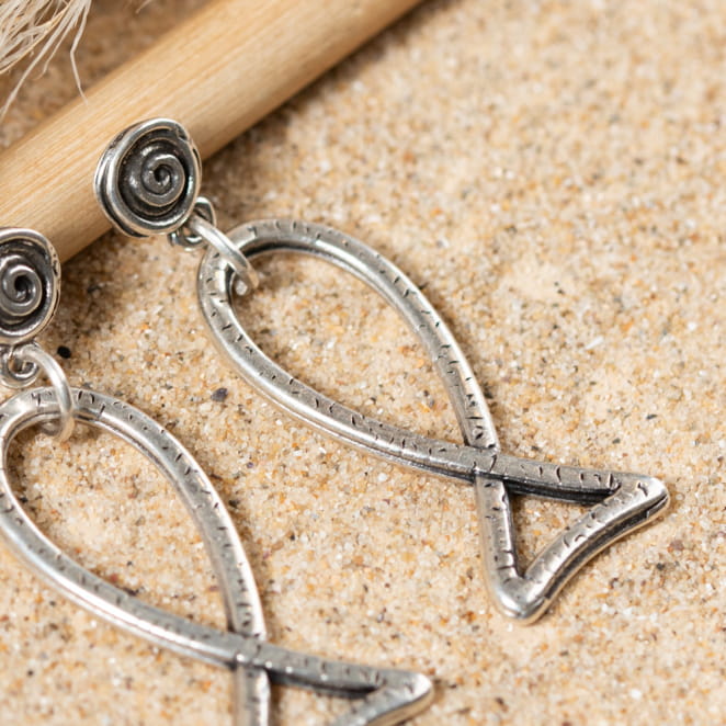 Évoquez vos souvenirs de vacances avec les boucles d'oreilles Carnon. Ces pendantes en métal argenté, ornées de ravissants poissons, apportent une touche maritime à votre look. Un bijou idéal pour celles qui souhaitent garder un peu de l'océan avec elles au quotidien.