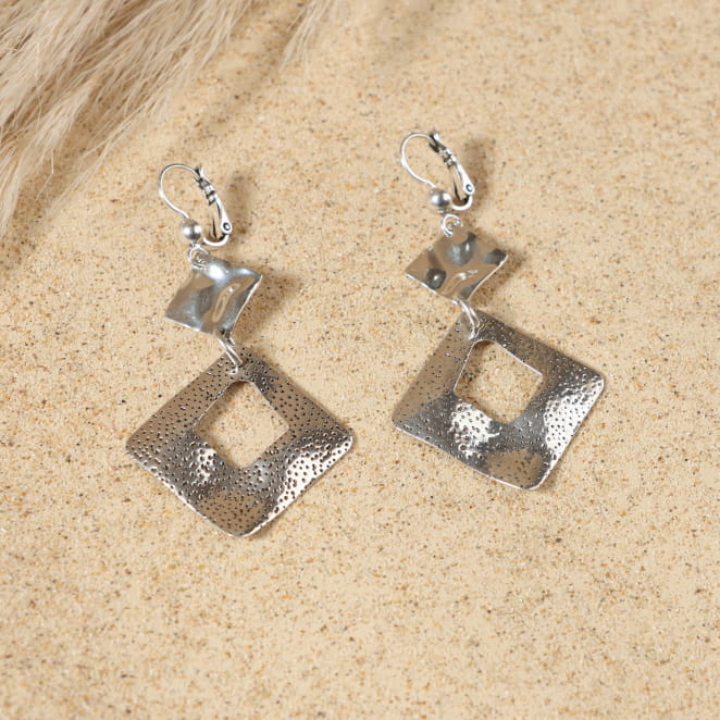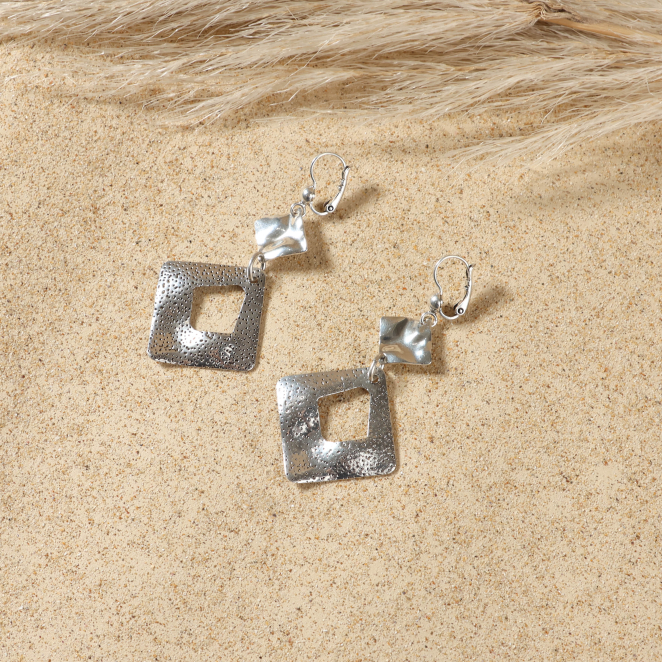 Laissez-vous porter par les boucles d’oreilles Cenone, une création argentée qui capture l’essence des paysages marins et la sérénité des vacances en bord de mer. Leur design épuré, alliant dormeuses et pendentifs carrés, apporte une touche de lumière et de naturel à votre style.