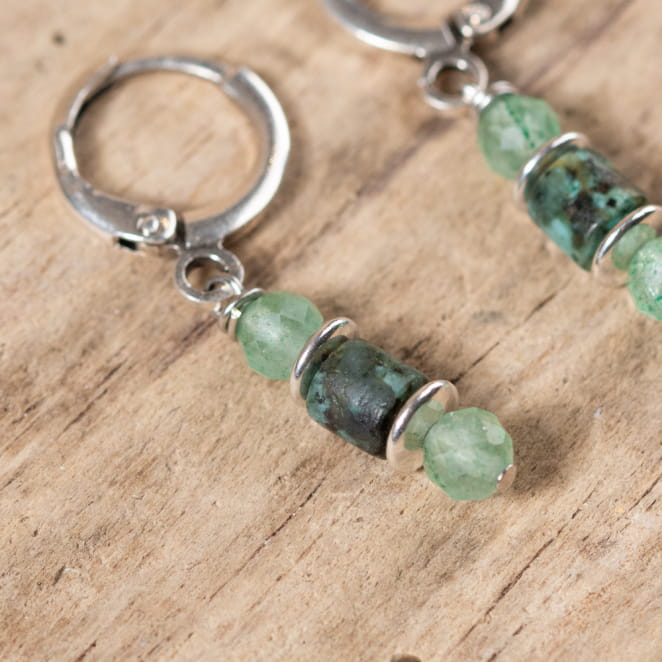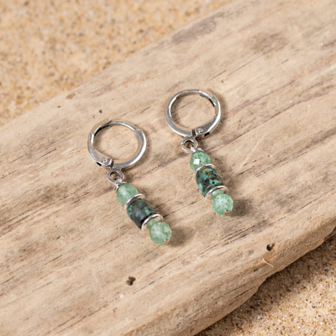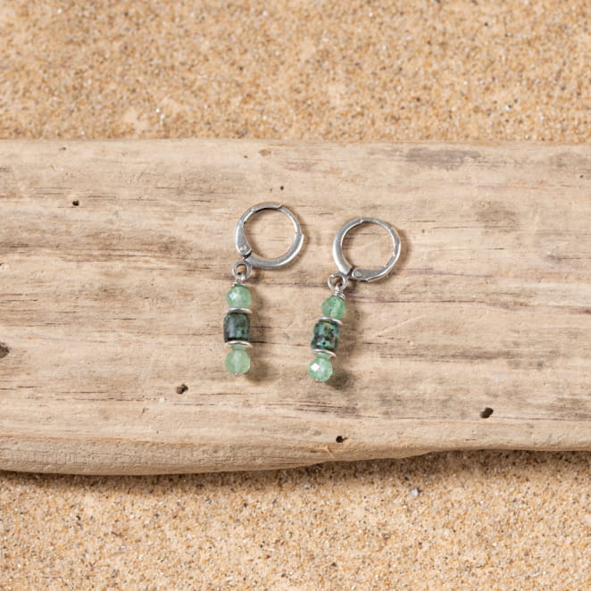 Les boucles d'oreilles Circe incarnent la discrétion et la douceur. Leur design délicat, avec des perles argentées et vert d'eau, apporte une touche subtile à votre style. Conçues pour être légères et confortables, elles ajoutent une élégance discrète à toutes vos tenues.