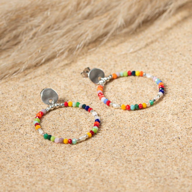 Découvrez nos boucles d'oreilles en perles Coni : une explosion de couleurs et de joie pour célébrer les beaux jours. Leur forme ronde et leur couleur argentée illumine votre visage d'un éclat estival. Légères et gaies, elles apportent une touche de chaleur et de gaieté à votre tenue, parfaite pour prolonger la magie de la plage et du soleil.