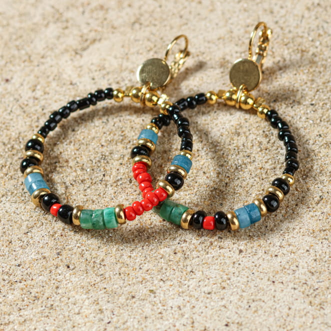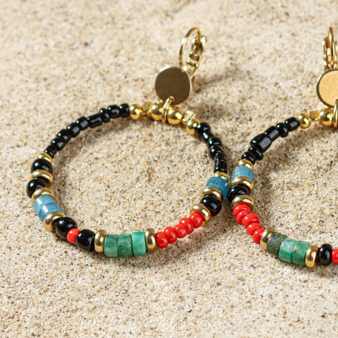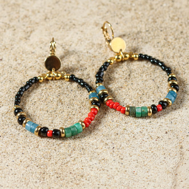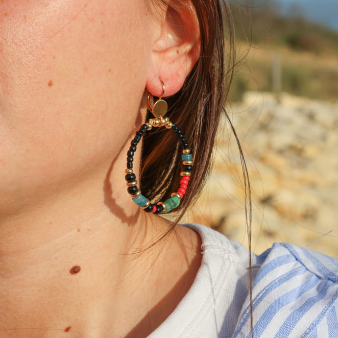 Découvrez le mystère et l'élégance des boucles d'oreilles Conque ! Plongez dans un univers à la fois profond et envoûtant de cette paire de boucles d'oreilles, un bijou aux nuances profondes qui mélange perles de rocaille et pierres naturelles. Chaque détail de ce bijou artisanal est conçu pour apporter une touche de caractère et d'élégance à vos tenues. Le contraste entre les perles noires et les perles rouges évoque la passion et l'énergie. Chaque pierre confère à ce bijou un caractère unique, renforçant son charme mystérieux. Entièrement fabriqué à la main en France, il témoigne d'un savoir-faire artisanal de qualité.