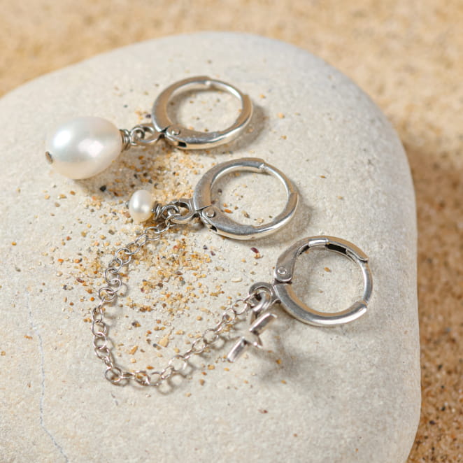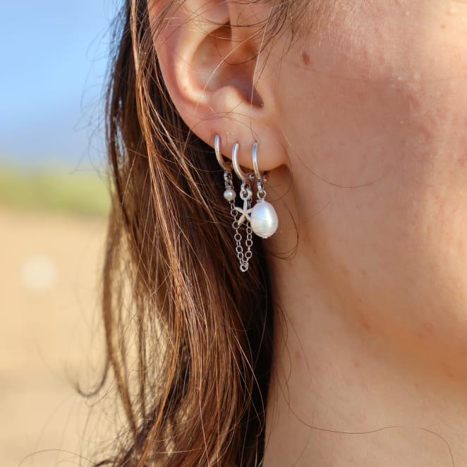 Ajoutez une touche marine à votre style avec les boucles Corsaire, ornées d'un pendentif en forme d'étoile et de perles de rivière. Conçues spécialement pour les oreilles multi-percées, ces boucles offrent de nombreuses possibilités de port pour un look personnalisé et sophistiqué. L'alliance de l'argenté et de la perle de rivière évoque la beauté et la sérénité de l'océan, et le pendentif étoile apporte une note de fantaisie. Inspirées par le monde marin, ces boucles d'oreilles raffinées et polyvalentes sont parfaites pour prolonger l'esprit des vacances au bord de la mer !