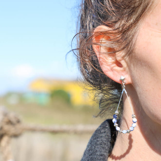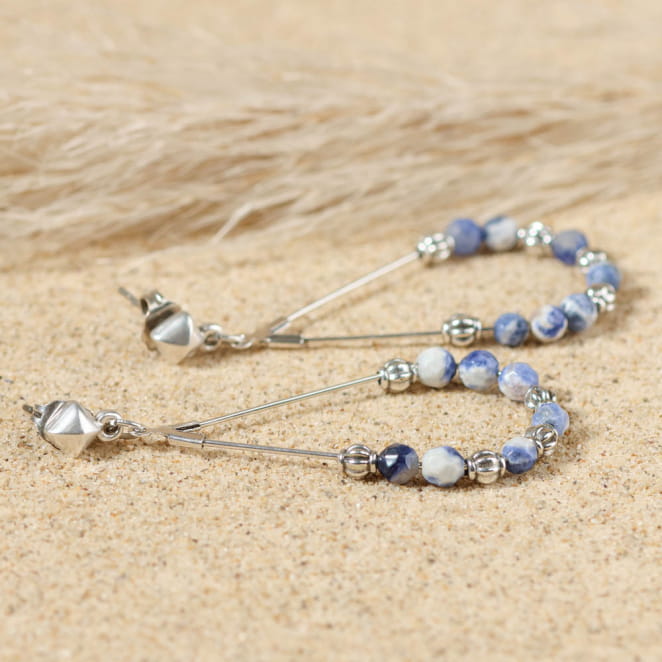Craquez pour les boucles d'oreilles Dabia, ponctuées de perles de sodalite bleues et de perles argentées. voir plus
