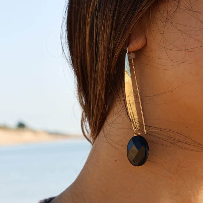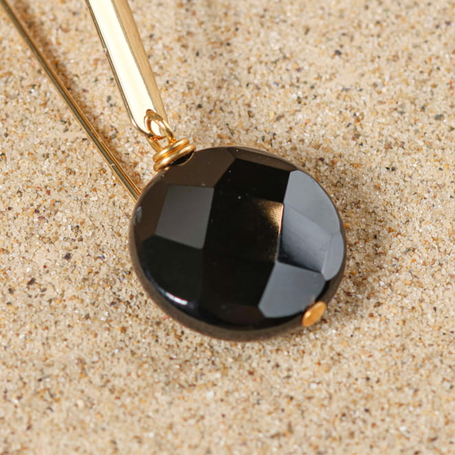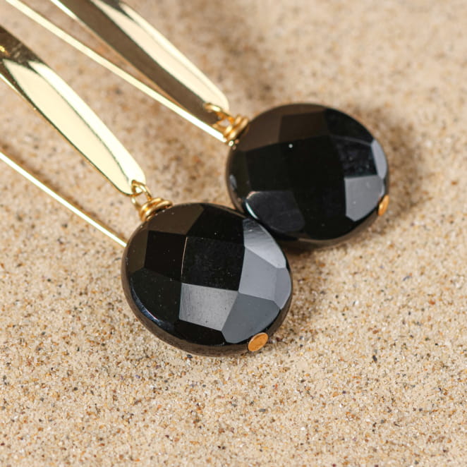 Sublimez votre allure avec Les boucles d'oreilles pendantes Diva, dotées d'une longue tige dorée qui capte la lumière à chaque mouvement. La perle facettée noire, élégante et mystérieuse, apporte une touche de sophistication intemporelle. Parfaites pour rehausser n'importe quelle occasion, ces boucles d'oreilles sont un véritable bijou de caractère.