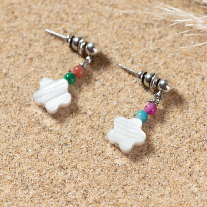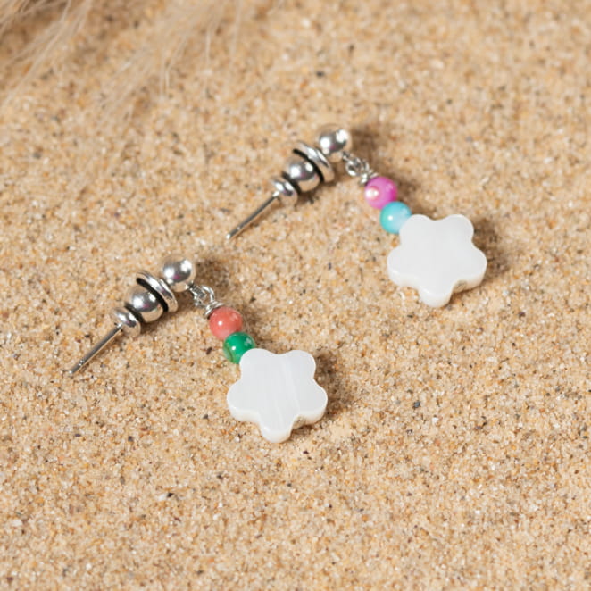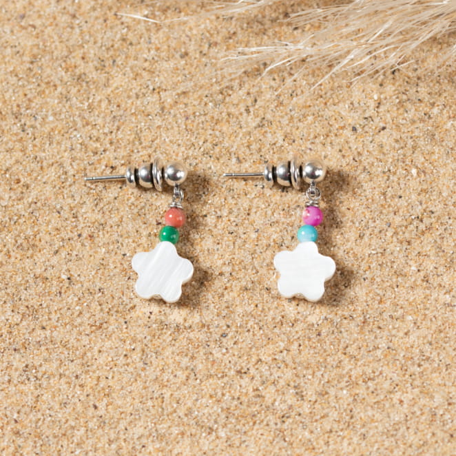Découvrez les adorables boucles d'oreilles pour enfants Casoria. Ornées d'une fleur en nacre blanche et de perles multicolores, elles apportent une touche de douceur et de fantaisie. Parfaites pour les petites fashionistas, ces boucles d'oreilles argentées ajoutent une touche de charme à chaque tenue.
