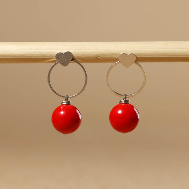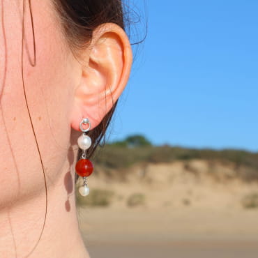 Mettez de la couleur avec nos boucles d’oreilles Eros, une alliance subtile entre la douceur de la calcite rouge et l’éclat de l'argenté. Ces boucles, ornées de cœurs délicats, évoquent la légèreté et captent l’essence des couchers de soleil. Un bijou fait main, lumineux et poétique, pour illuminer vos journées d’une touche d’évasion.