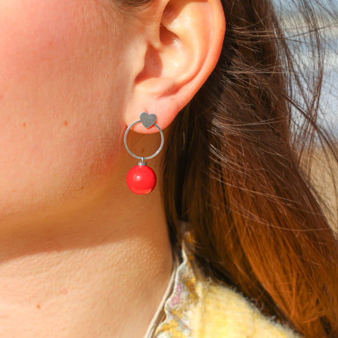 Mettez de la couleur avec nos boucles d’oreilles Eros, une alliance subtile entre la douceur de la calcite rouge et l’éclat de l'argenté. Ces boucles, ornées de cœurs délicats, évoquent la légèreté et captent l’essence des couchers de soleil. Un bijou fait main, lumineux et poétique, pour illuminer vos journées d’une touche d’évasion.