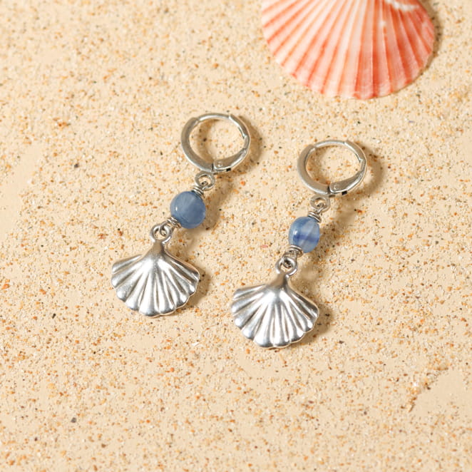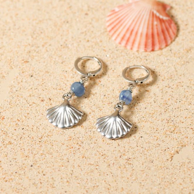 Retrouvez l’esprit apaisant des bords de mer avec les boucles d'oreilles pour femme Estany, une pièce raffinée qui allie douceur et naturel. Ces boucles pour pour femme marie une petite perle bleue en cyanite sublimées par un pendentif en forme de coquillage argenté. Complétez votre style avec notre collier pour femme Estany !