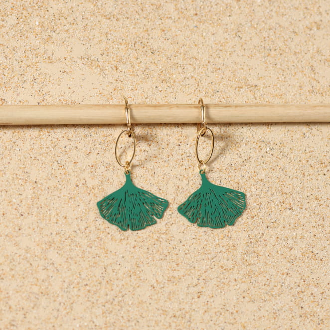 Sublimez vos oreilles avec les boucles d'oreilles pour femme Exquis, des indispensables pour une tenue colorée tout en finesse. Légères et élégantes, les boucles d'oreilles Exquis sauront sublimer votre visage avec délicatesse grâce à son pendentif en forme de feuille verte. Un bijou fait main à porter pour toutes les occasions !