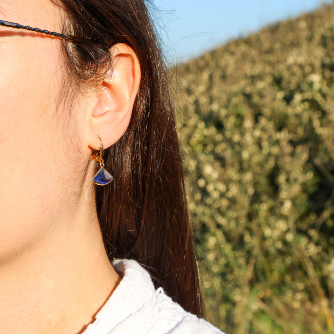 Apportez une touche de délicatesse et de raffinement à votre tenue avec les boucles d'oreilles Faustine. Conçues en métal doré et ornées d'un élégant pendentif en verre bleu, ces boucles d'oreilles inspirent la légèreté et la fraîcheur des vagues ! Leur forme épurée met subtilement en valeur la transparence et la couleur douce du bleu, rappelant les nuances des vagues dans l'océan. Le doré, associé à la douceur du verre bleu, crée un contraste harmonieux qui illuminera votre visage et ajoutera une note romantique à toutes vos tenues !