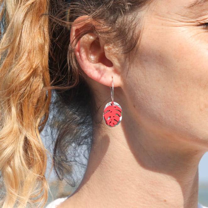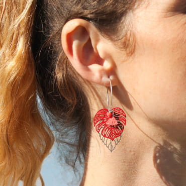Laissez-vous tenter par la paire de boucles d'oreilles Feuillette. Elle vous accompagnera en toute saison grâce à sa simplicité et son originalité. Ces délicates créoles argentées et rouge sont la touche d'éclat idéales pour tous vos looks.