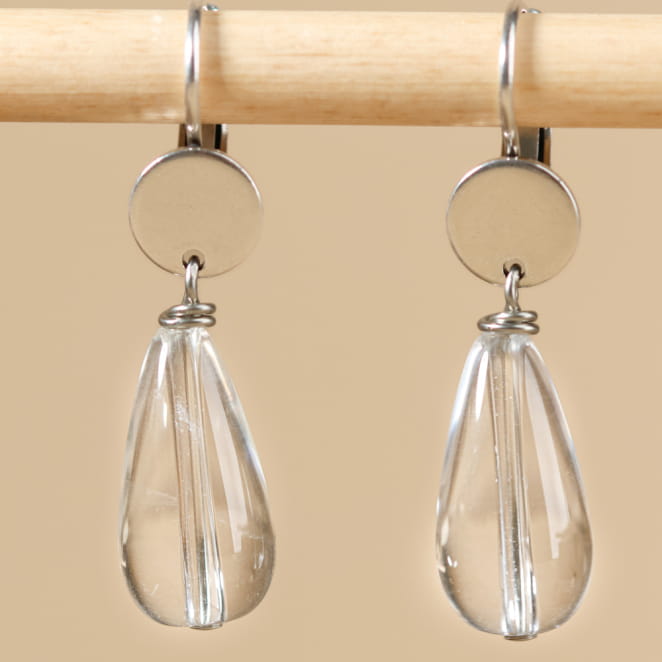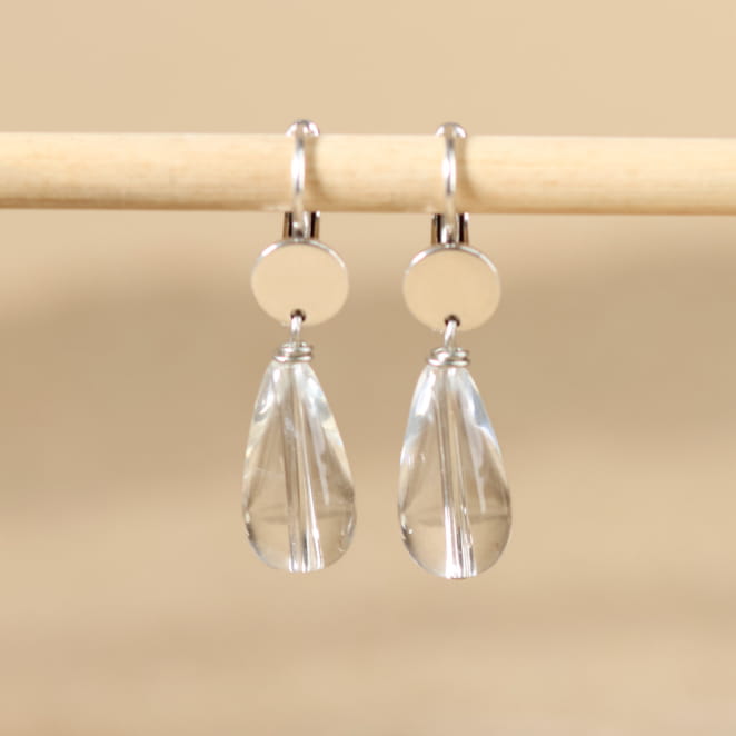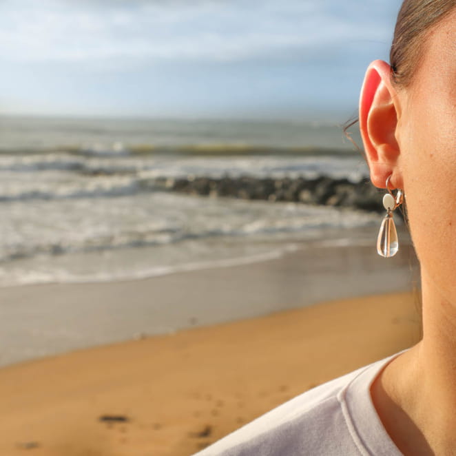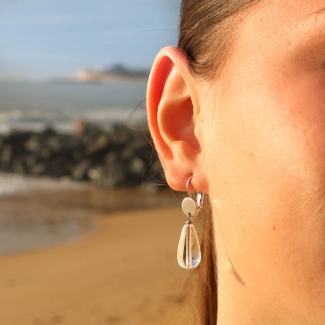 Plongez dans la pureté avec les boucles d'oreilles Fripon, ornées d’une perle en cristal de roche en forme de goutte. voir plus