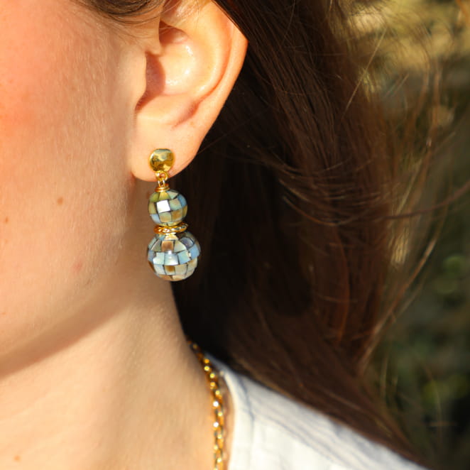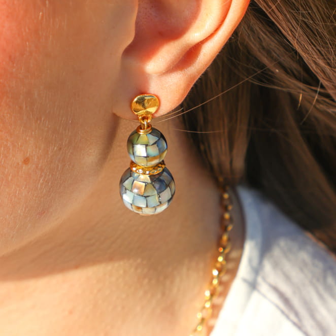 Retrouvez l’esprit festif et naturel avec nos boucles d’oreilles Funk aux perles de nacre grises et à la touche dorée. Légères et pleines de caractère, elles rappellent les reflets changeants de la mer et s’associent à toutes vos envies d’évasion. Un bijou artisanal pour illuminer vos journées avec douceur.