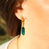 Sublimez votre style avec les boucles d'oreilles Galante ! Ces boucles d’oreilles, confectionnées à la main, capturent l’essence des journées ensoleillées au bord de l’eau. Leurs anneaux dorés délicats sont ornés d’un pendentif en perle verte facettée, rappelant les reflets changeants de la mer. Ajoutez une touche de fraîcheur et d’élégance à vos tenues, que ce soit pour une balade sur la plage ou une soirée estivale. Léger et intemporel, ce bijou incarne la douceur des vacances toute l’année.