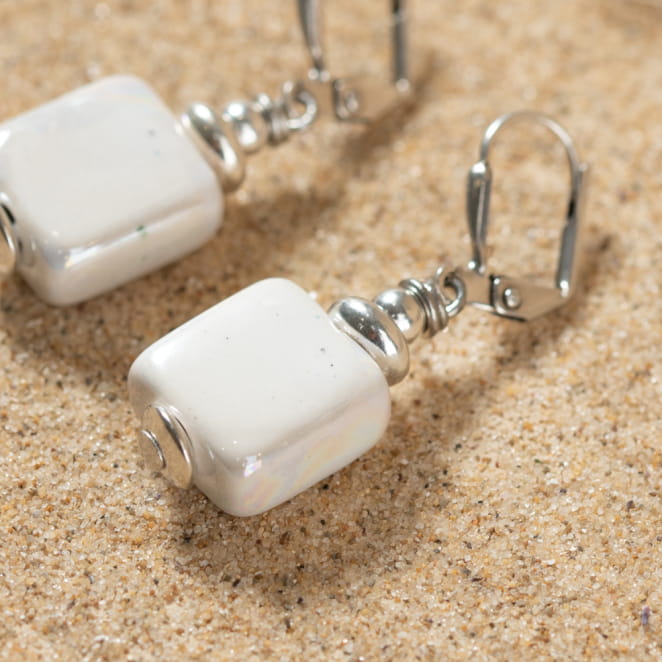 - d'une perle carrée en céramique carrée blanc,