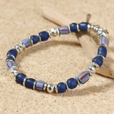 - de perles en verre bleu,