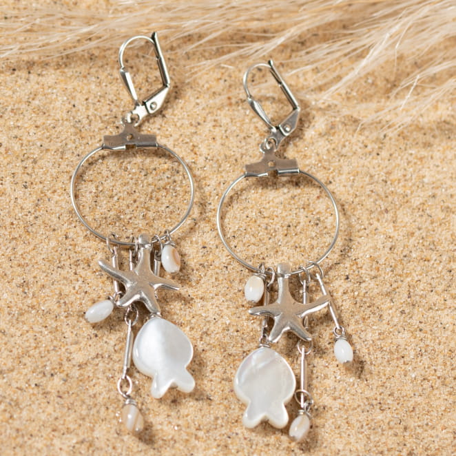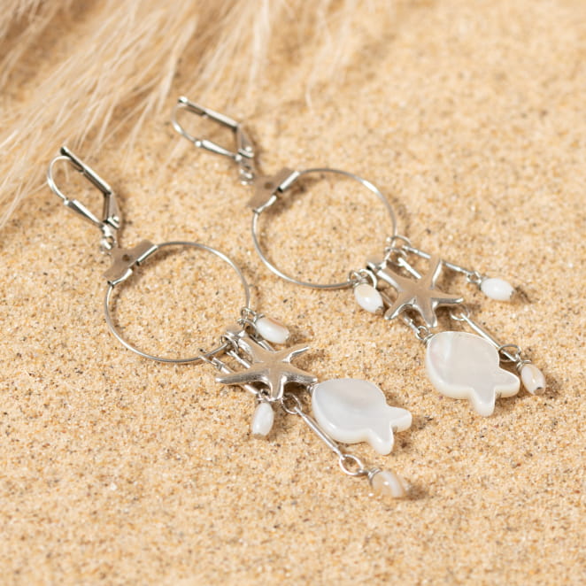 Plongez dans l'élégance tout en finesse avec les boucles d'oreilles Groix ! Ces bijoux fantaisie mettent en valeur un délicat petit poisson en nacre, rappelant la douceur des vacances en bord de mer. Inspirées par l'océan et les belles matières, ces boucles d'oreilles femme ajoutent une touche de raffinement et de fraîcheur à toutes vos tenues. Parfaites pour sublimer votre style avec charme et originalité !