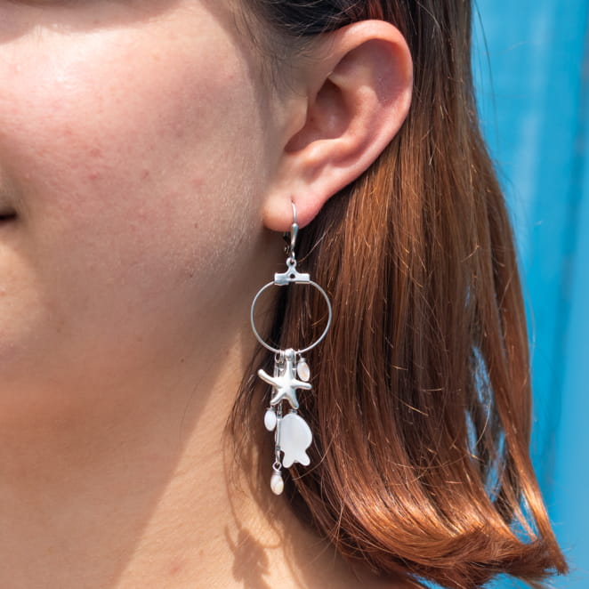 - d'une perle en forme d'étoile de mer en métal plaqué argent 999,