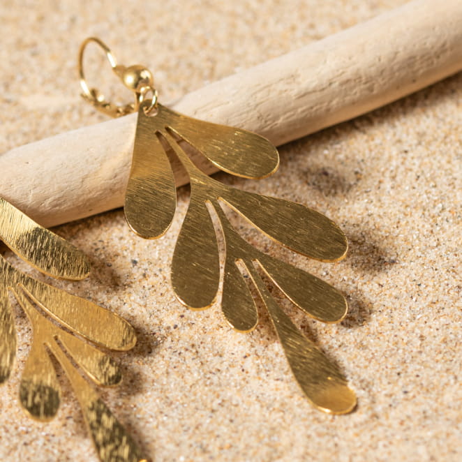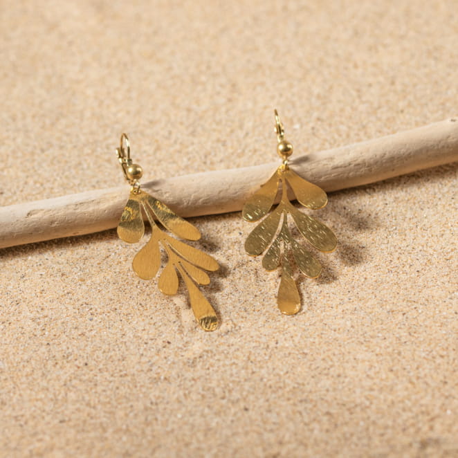 Les boucles d'oreilles Gui, délicatement conçues en métal doré, captivent par leur originalité et leur élégance. voir plus