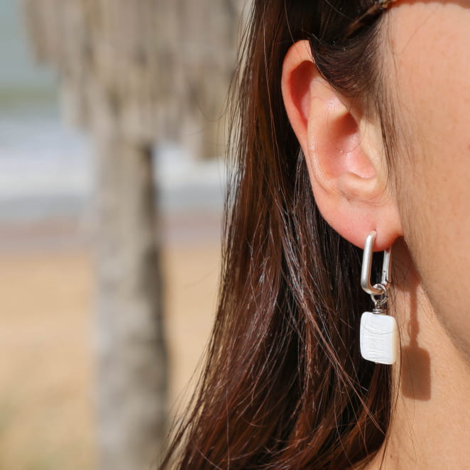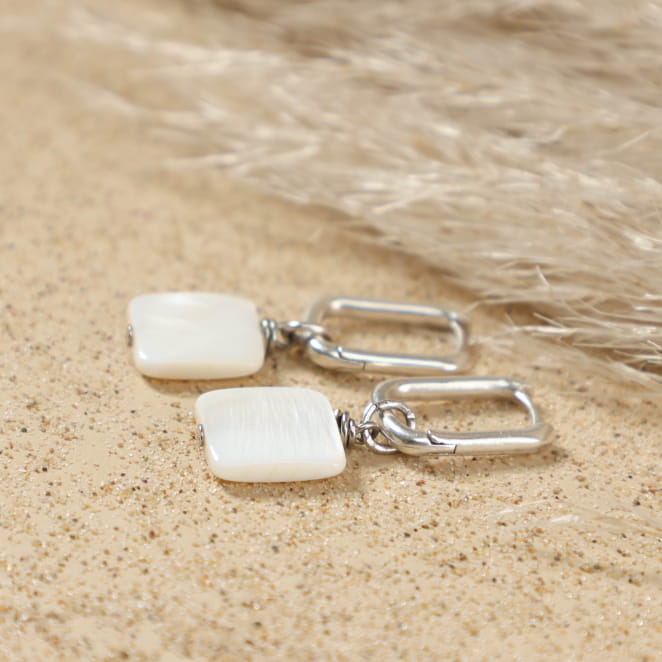 Mettez en valeur votre féminité avec les boucles d'oreilles Héloise : leur design raffiné présente des dormeuses rectangulaires argentées, ornées de délicates perles pastilles en nacre blanche. Une alliance parfaite de subtilité, d'élégance et d'éclat, ces pendantes ajoutent une touche sophistiquée à toute tenue, idéales pour briller en toute occasion.