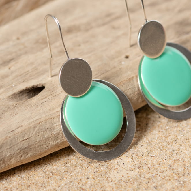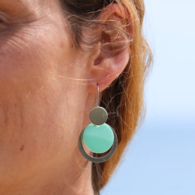 Les boucles d'oreilles Imani sont les boucles d'oreilles parfaites ! Un bijou élégant avec leur pendentif rond émaillé émeraude qui apporte du peps à votre tenue, accompagnées de son métal argent. Des couleurs délicates qui s'accordent facilement.