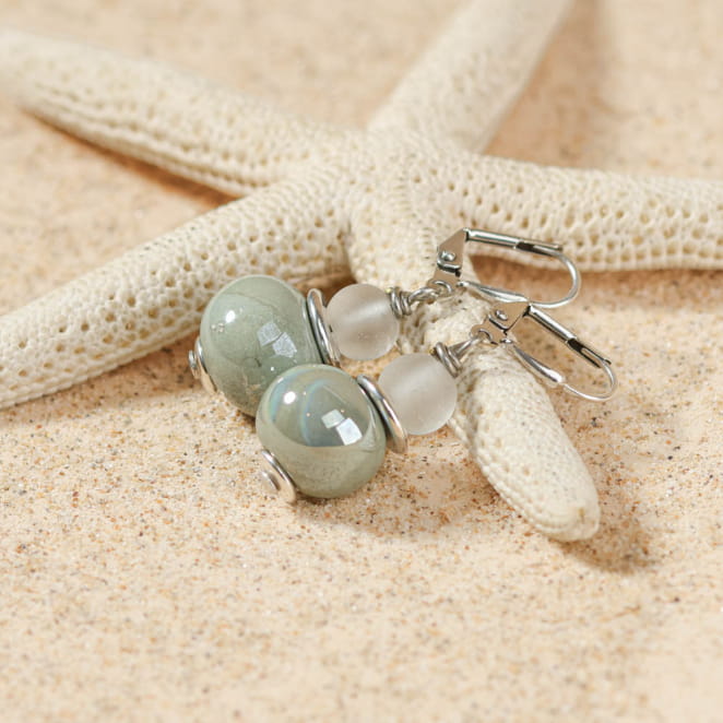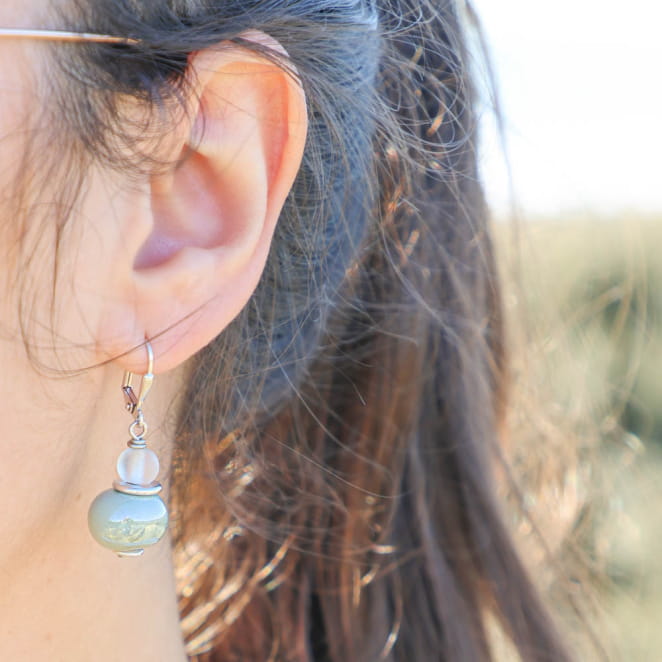 Apportez une touche de douceur à votre allure avec les boucles d’oreilles argentées Ismalda. Montées sur dormeuse pour un porté élégant, elles associent une perle en verre blanche lumineuse à une perle en céramique gris clair aux reflets délicats. Un duo harmonieux qui joue sur les matières et les nuances pour un bijou à la fois discret et raffiné.