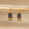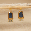 Découvrez les boucles d’oreilles Jemina, un bijou artisanal où se mêlent le bleu profond du verre et de l’émail à l’éclat chaleureux de l’or fin. Ces créations, rehaussées de perles d’hématite dorées, apportent une touche de lumière et de naturel à votre style, inspirée par l’originalité du bord de mer.