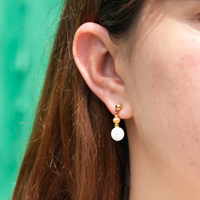 Accompagnez vos tenues tout en délicatesse et en élégance avec ces boucles d'oreilles Jenny. Leurs perles en verre beige et en nacre blanche habillent votre visage tout en finesse. Un bijou tendance que vous pourrez porter au quotidien ! Pour un look parfait, craquez pour le collier et le bracelet Jenny.