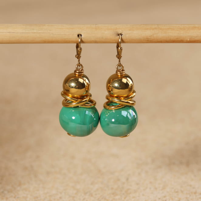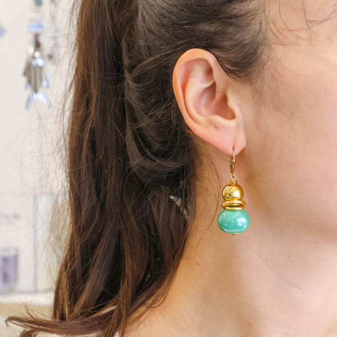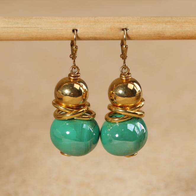 Offrez à votre tenue une touche marine avec ces jolies boucles d'oreilles Jeux en souvenir de vos vacances à la mer. Ses boules en céramique vert, vous apporteront de la fantaisie...tout en douceur !