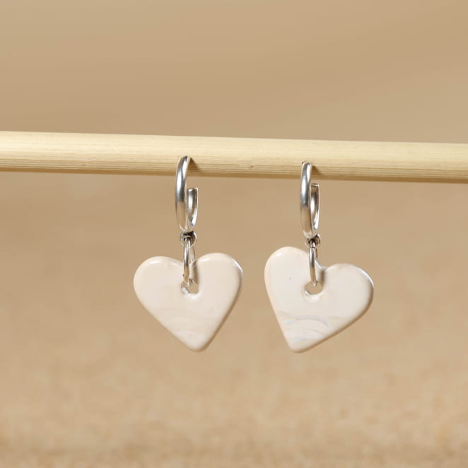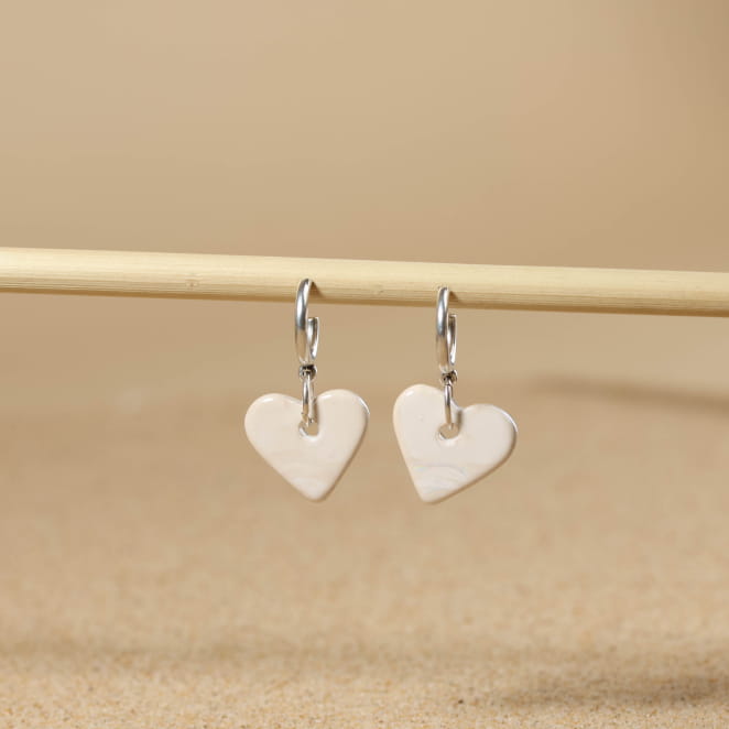 Retrouvez la douceur avec ces boucles d’oreilles pour femme, où un pendentif cœur en céramique blanc se marie à un anneau et un clou argentés. Inspiré par la simplicité et la lumière des bords de mer, ce bijou apporte une touche de poésie à votre look. Disponible en rouge et émeraude pour s’adapter à toutes vos envies.