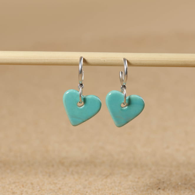Retrouvez la douceur avec ces boucles d’oreilles pour femme, où un pendentif cœur en céramique émeraude se marie à un anneau et un clou argentés. Inspiré par la simplicité et la lumière des bords de mer, ce bijou apporte une touche de poésie à votre look. Disponible en rouge et blanc pour s’adapter à toutes vos envies.