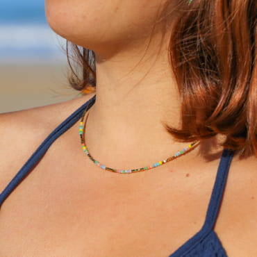 - de perles en verre multicolore,