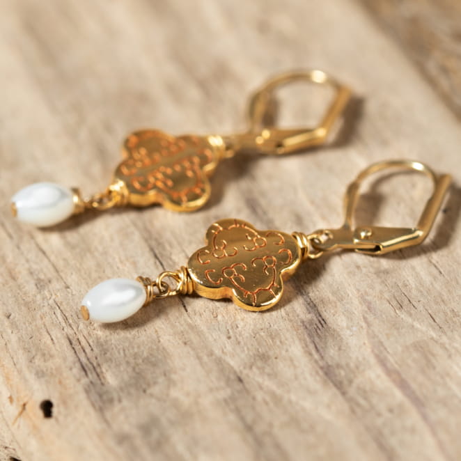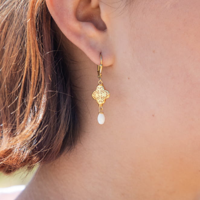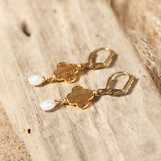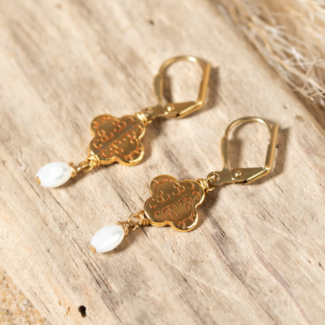 Découvrez l'élégance discrète avec les boucles d'oreilles Karen doré et blanc. voir plus